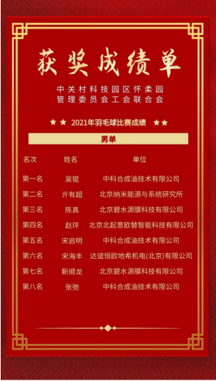 公司副總經理趙玶榮獲2021年羽毛球比賽第四名!