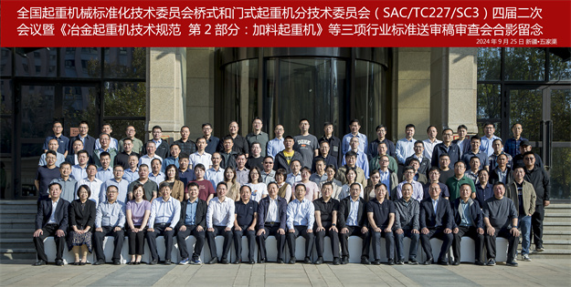 2024年9月24日至27日在新疆五家渠市,隆重召開全國(guó)起重 機(jī)械標(biāo)準(zhǔn)化技術(shù)委員會(huì)橋式和門式起重機(jī)分技術(shù)委員會(huì)四屆二次會(huì)議暨《冶金起重機(jī)技術(shù)規(guī)范 第 2 部分:料箱起重機(jī)》等三 項(xiàng)行業(yè)標(biāo)準(zhǔn)送審稿審查會(huì),對(duì) 2024 年橋門式起重機(jī)標(biāo)準(zhǔn)化工作 進(jìn)行總結(jié)回顧,對(duì) 2025 年重點(diǎn)工作進(jìn)行研究部署。